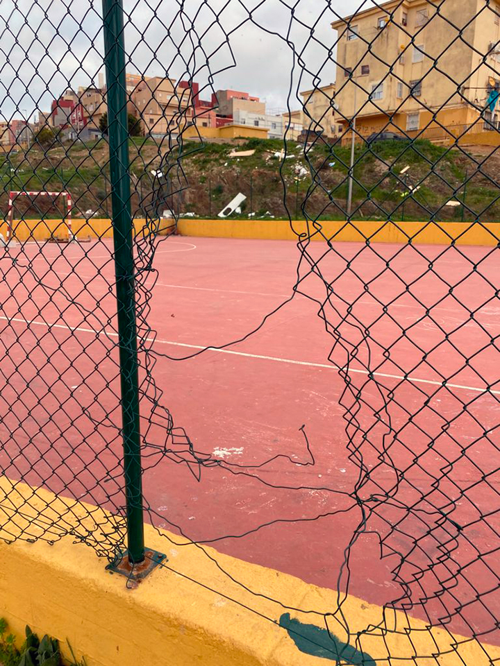 En una reciente visita realizada a la instalación por la secretaria de Deportes del PSOE, Elena Mateo, que estuvo acompañada por el secretario de Relaciones Institucionales, Adil Mohamed, la también diputada de la Asamblea ha comprobado el estado de deterioro de la misma, haciendo especial hincapié en que la malla perimetral de cierre de la instalación “está rota por muchos sitios, así como las porterías no están ancladas al suelo, lo que supone un verdadero peligro para los vecinos y vecinas a la hora de practicar la actividad deportiva”.