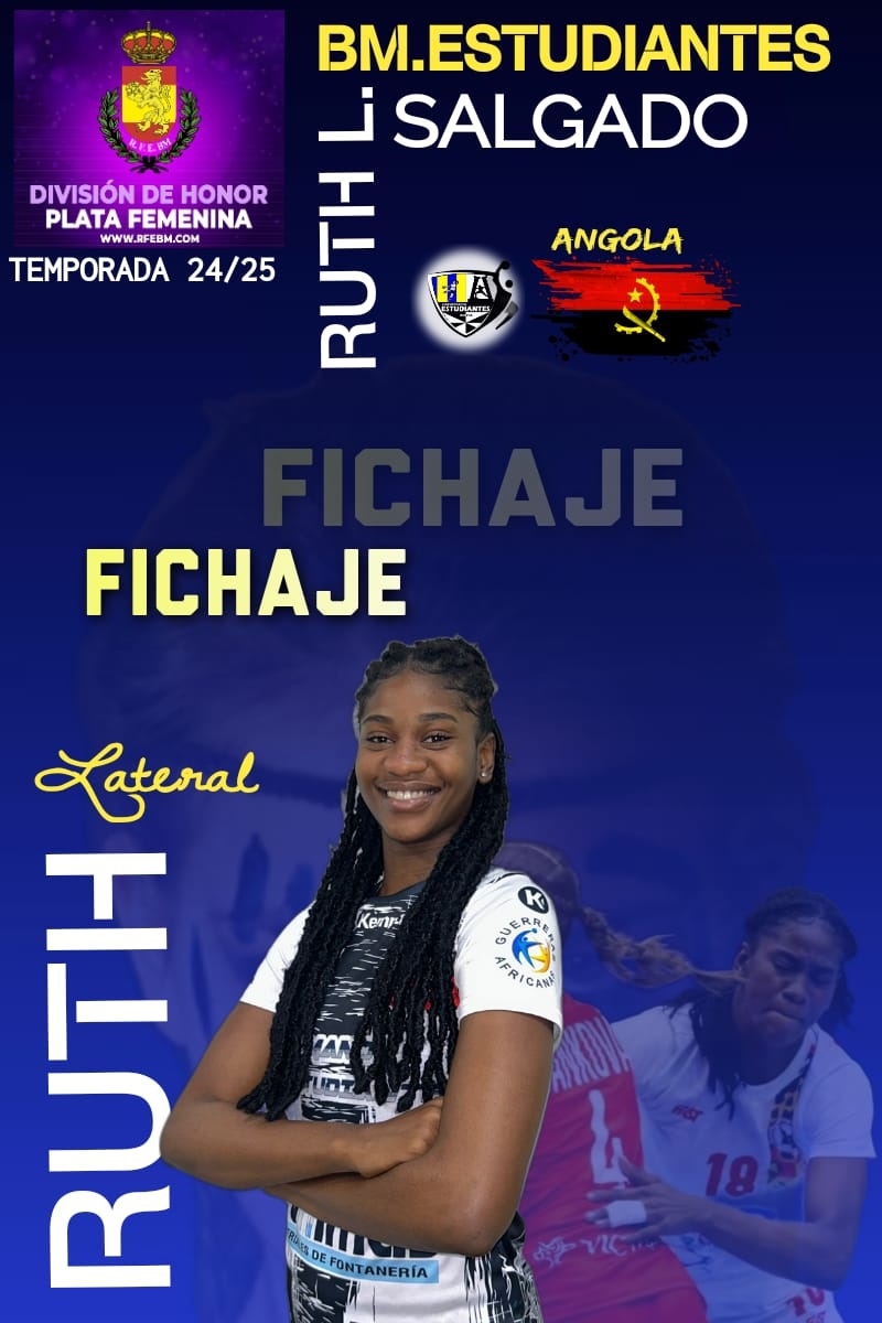 El Club Balonmano Estudiantes ha incorporado a su equipo de División de Honor Plata Femenina a la jugadora angoleña Ruth Lufilo Salgado, que ya ha comenzado a entrenarse con  sus nuevas compañeras y que tras haber obtenido el correspondiente visado, podrá jugar el próximo partido con el equipo estudiantil, este sábado a las 18:00 horas contra el conjunto melillense del Maravilla en el pabellón La Libertad.