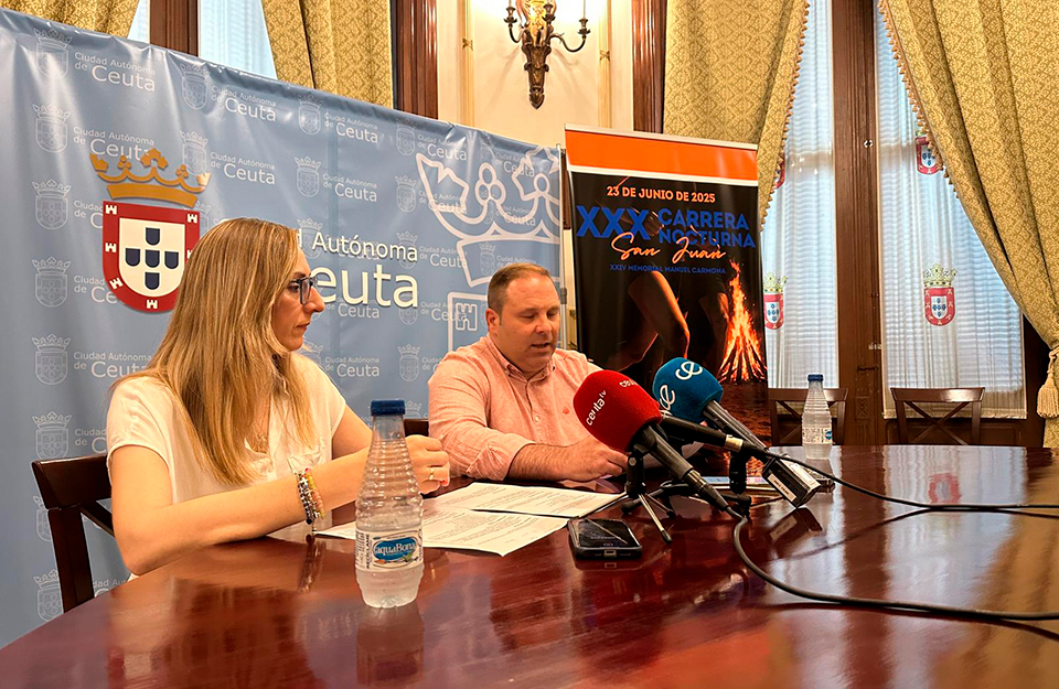 Las inscripciones para participar en la XXX Carrera Nocturna de San Juan, XIV Memorial 'Manuel Carmona', ha sido presentada este martes por el director general de Deportes, Sergio Aguilera, y la gerente del Instituto Ceutí de Deportes, Araceli García. La prueba se celebrará el próximo lunes 23 de junio a partir de las 21:00 horas y hay un total de 500 plazas disponibles en distintas categorías.