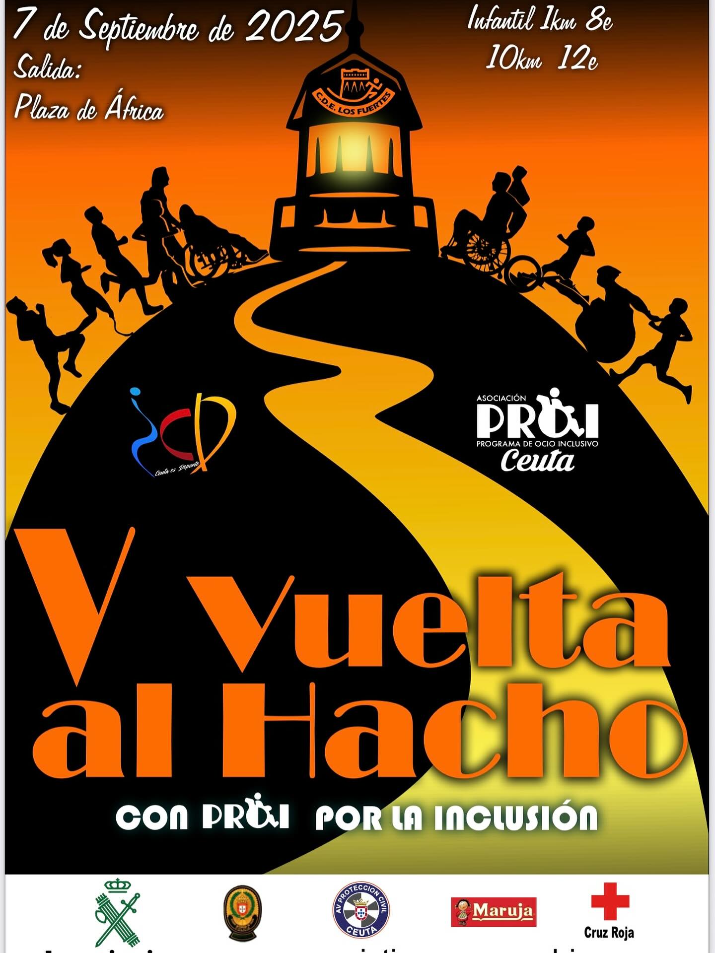 Ya están abiertas las inscripciones para participar en la V Vuelta al Hacho con PROI por la Inclusión, carrera organizada por el CDE Los Fuertes y que cuenta con el apoyo del Instituto Ceutí de Deportes. Una prueba solidaria que se celebrará el próximo domingo 7 de septiembre a partir de las 10:00 horas con salida y meta en la Plaza de África.