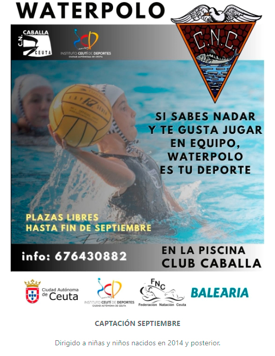 El Club Natación Caballa va a realizar durante el mes de septiembre unas jornadas de captación para niños y niñas que estén interesados en practicar waterpolo. Las mismas serán para nacidos en 2014 y años posteriores.