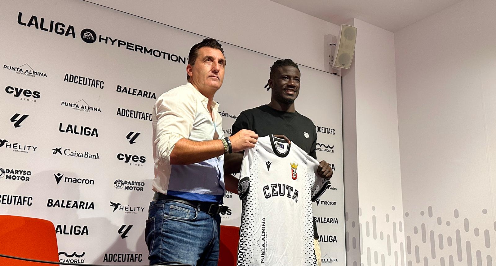 Samuel Obeng ya ha realizado su primer entrenamiento con la AD Ceuta FC este jueves y luego ha sido presentado ante los medios. El delantero centro ghanés, que ha llegado al equipo caballa procedente del Widad de Casablanca marroquí, está listo para debutar este domingo.