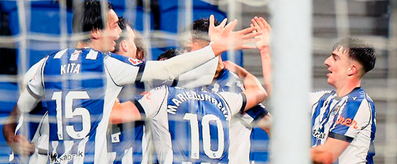 Los jugadores de la Real B celebran el gol del triunfo de este lunes ante el Valladolid